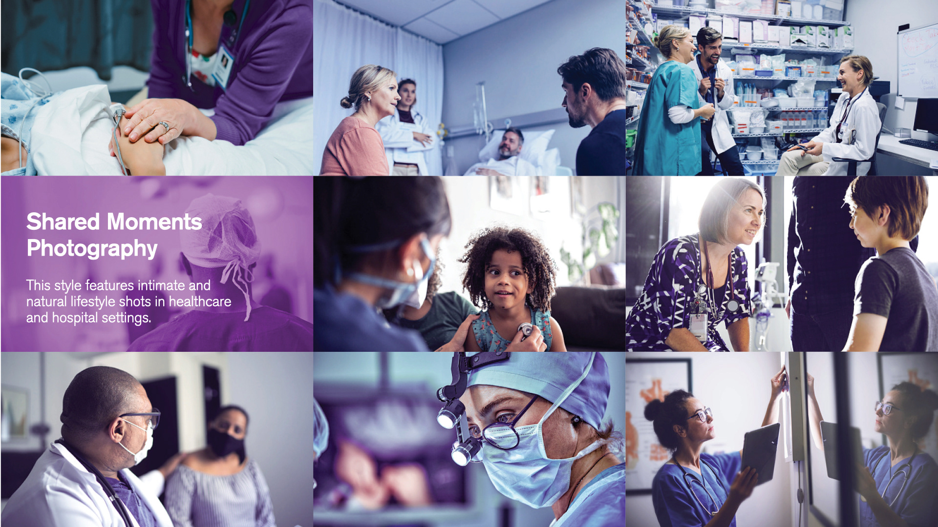 The visuals are rooted in real-world experiences, combining graphic brand patterns with portraiture to reflect the realities of modern healthcare professionals and administrators.